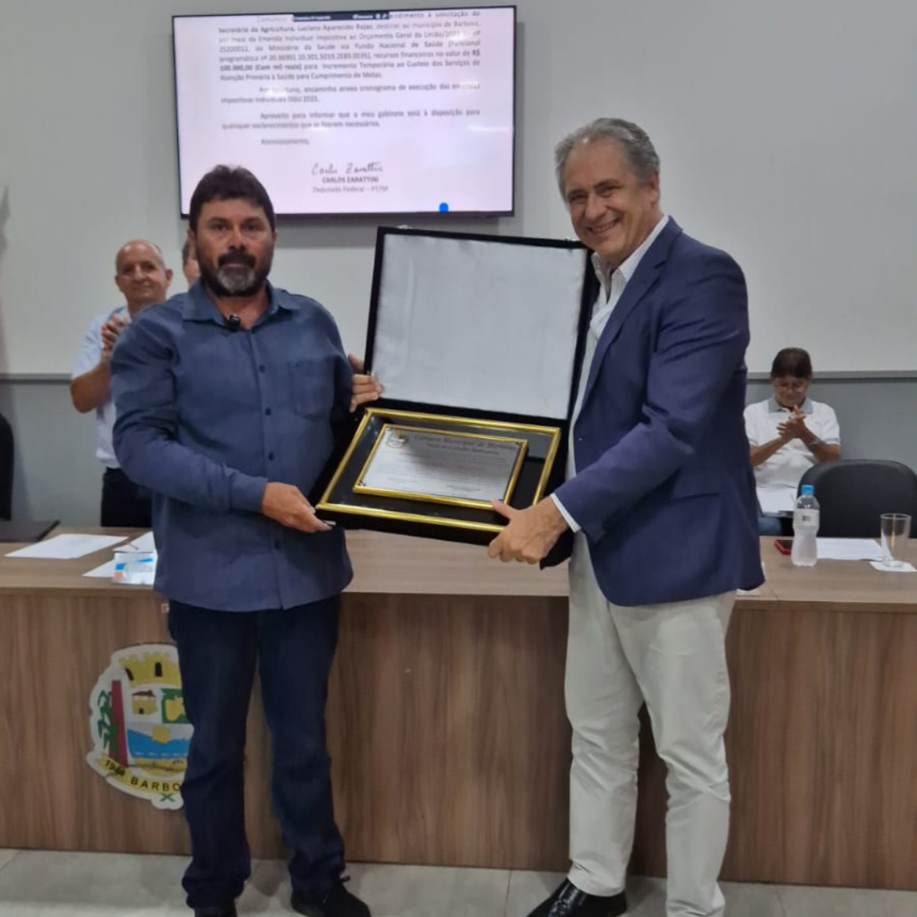 O prefeito Rodrigo Primo Antunes também ressaltou o significado da homenagem e a contribuição do deputado para o desenvolvimento do município. “É mais do que uma homenagem simbólica, é o reconhecimento de quem, mesmo não tendo nascido aqui, demonstra, na prática, compromisso com a cidade. Agradeço, em nome da população, os recursos enviados. Isso demonstra, na prática, o que é ser cidadão barbosense, cuidar das pessoas, investir no desenvolvimento e construir resultados concretos”, declarou.